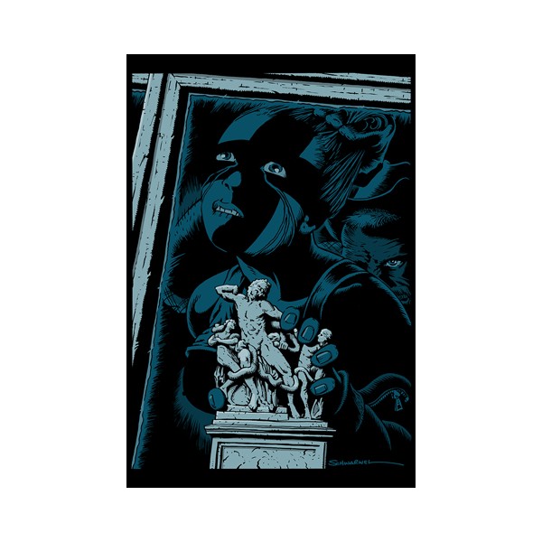 Kunstvoll gigantierte, von Schwarwel kraftvoll kolorierte Splashpage aus seiner bekannten Online-Graphic Novel “SEELENFRESSER - Erstes Buch: LIEBE”. Sehr hochwertig.