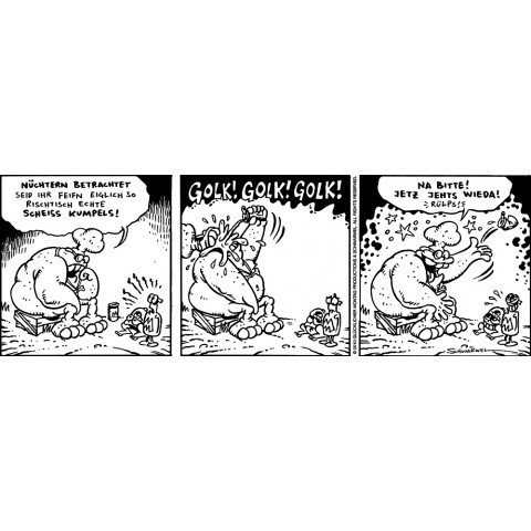 Original-Zeichnung Schweinevogel HOSSA! Comicstrip von Schwarwel, 2011
