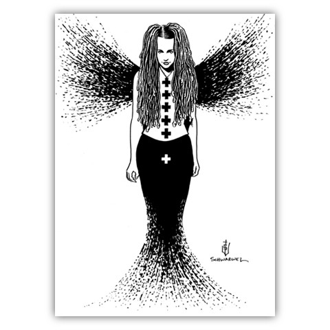 Schwarzer Copic und Pentel Stylo auf Glanzpapier, 120 g/qm