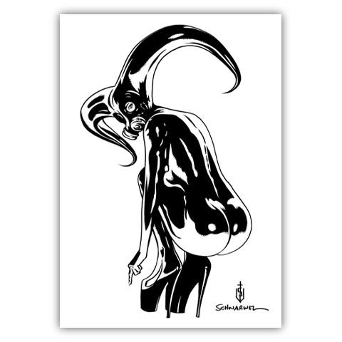 Schwarzer Copic und Pentel Stylo auf Glanzpapier, 120 g/qm