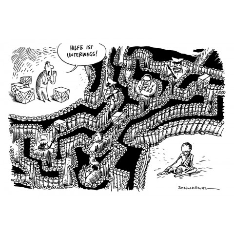 Natürlich funktionieren Karikaturen nur, wenn sie auf ein potentes Handwerk zurückgreifen können. Bei aller im Tagesgeschäft erforderlichen Schnelligkeit, sind Schwarwels Zeichnungen klar, präzise, detailverliebt. Sie bieten - das ist die Kür und die große Kunst gleichermaßen - auch dem zweiten Blick noch etwas zu entdecken, schaffen ein kleines Stück wohltuende Distanz zum oft genug Verzweiflung herausfordernden Anlass dieses kleinen täglichen Schmunzelhäppchens.