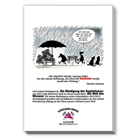 Nachdem Ende 2011 mit „Die Bändigung des Kapitalismus” das erste Buch mit Karikaturen & Cartoons von Schwarwel erschienen ist, legt der Künstler nun mit „Die Welt des Wissens” sein zweites Werk vor, in dem die besten Karikaturen aus dem Arbeitsjahr 2011/2012 zu finden sind, die u. a. in Tageszeitungen und Magazinen wie Cicero, Financial Times Deutschland, Berliner Kurier, Hamburger Abendblatt, Sächsische Zeitung, taz, zitty sowie in der Evangelische Sonntags-Zeitung veröffentlicht wurden.