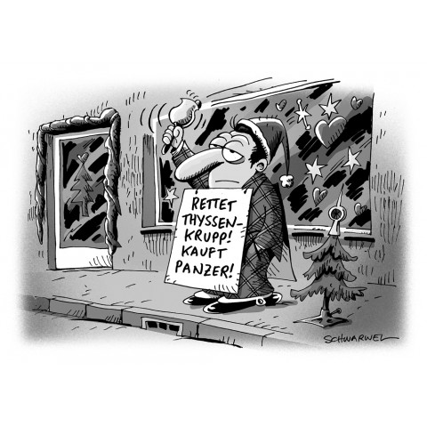 „… am 5. März 2010 wurde die erste Karikatur meines zweiten Karikaturistenlebens abgedruckt … Das Angreifen, Anprangern, Aufrütteln und Provozieren übe ich seitdem jeden Tag.” (Schwarwel)
