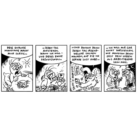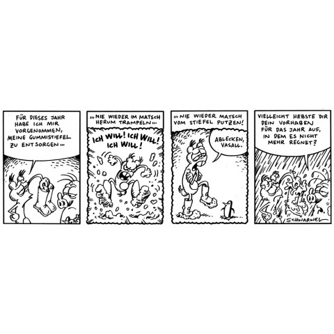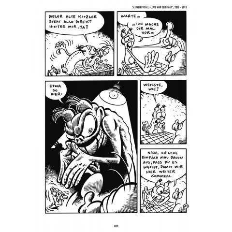 Und auch Schwarwel äußert sich vorwörtlich zu seinem Schaffen und seiner Liebe zu seinem knuddeligen Federvieh Schwei-Schwei.
