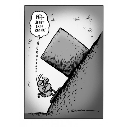 Schwarwel begegnet den Unwägbarkeiten des Lebens durch konsequenten Alkohol- und Fleischverzicht, durch tägliches Verarbeiten des Erlebten und Gesehenen auf Papier und zuweilen durch exzessiven Ramones- und Beethoven-Konsums.