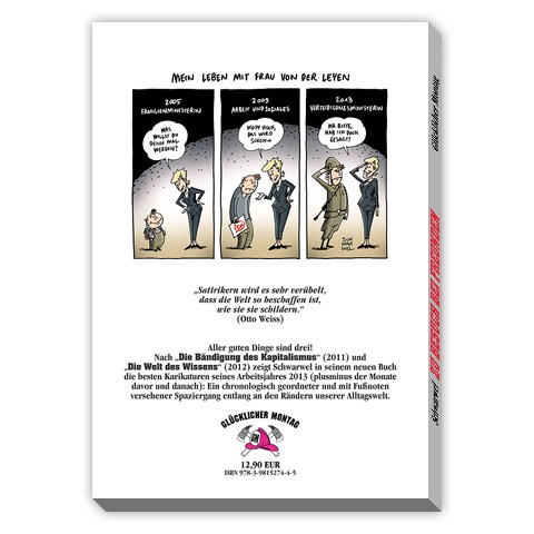 Nach „Die Bändigung des Kapitalismus“ (2011) und „Die Welt des Wissens“ (2012) zeigt Schwarwel in seinem 3. Karikaturen & Cartoons-Buch erneut die besten täglich gezeichneten, tagesaktuellen und politischen Karikaturen seines Arbeitsjahres 2013 (plusminus der Monate davor und danach), die in zahlreichen Zeitungen, Magazinen und Verlagen erschienen sind, u. a.: Der Spiegel, taz, zitty, Hamburger Abendblatt, Sächsische Zeitung, LVZ, Berliner Kurier, MAIN-POST, Braunschweiger Zeitung, Passauer Neue Presse, VATICAN-magazin, Evangelisches Sonntagsblatt, Cornelsen, Westermann Schroedel und l-iz.de.