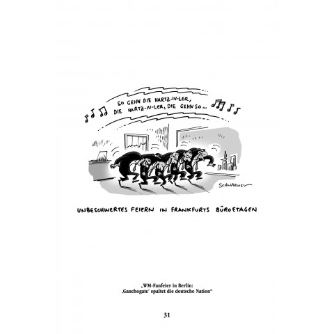 Nach „Die Bändigung des Kapitalismus“ (2011), „Die Welt des Wissens“ (2012) und „Zu Besuch bei Freunden“ (2013 plusminus) zeigt Schwarwel in seinem 4. Karikaturen & Cartoons-Buch erneut die besten täglich gezeichneten, tagesaktuellen und politischen Karikaturen seines Arbeitsjahres 2014 (plus der 2015er Monate danach), die in zahlreichen Zeitungen, Magazinen und Verlagen erschienen sind, u. a.: Klett, Westermann Schroedel, Berliner Kurier, Hamburger Abendblatt, Weser Kurier, Sächsiche Zeitung, Freie Presse, MAIN-Post, Südkurier, Wochenschau, Reutlinger Generalanzeiger, Straubinger Tagblatt und l-iz.de.