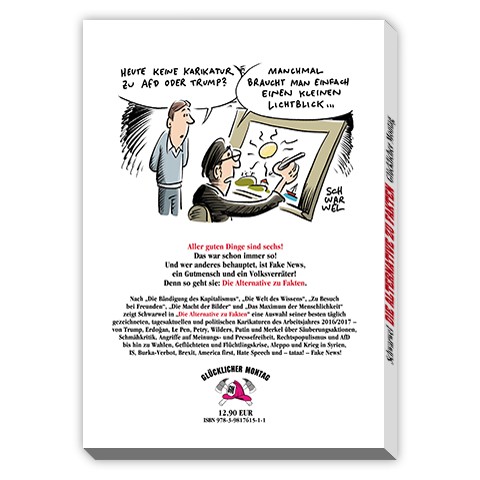 Nach „Die Bändigung des Kapitalismus“ (2011), „Die Welt des Wissens“ (2012), „Zu Besuch bei Freunden“ (2013 plusminus), „Die Macht der Bilder” (2014/2015) und „Das Maximum der Menschlichkeit“ (2015/2016) zeigt Schwarwel in seinem nunmehr 6. Karikaturen & Cartoons-Buch abermals eine Auswahl seiner besten täglich gezeichneten, tagesaktuellen und politischen Karikaturen seines Arbeitsjahres 2016/2017, die in zahlreichen Zeitungen, Zeitschriften und Magazinen, im TV und bei Verlagen erschienen sind, u. a.: ARD Nachtmagazin, NDR extra3, Klett, Westermann Schroedel, Cornelsen, PONS, Lappan, Handelsblatt, Sächsische Zeitung, Freie Presse, Hamburger Abendblatt, Südkurier, Wochenschau, Reutlinger Generalanzeiger, Tagblatt u. v. w.
