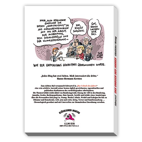Zum siebten Mal versammelt Schwarwel in „Das Unbuch des Jahres“ eine rein selektive Auswahl seiner besten täglich gezeichneten, tagesaktuellen und politischen Karikaturen des zurückliegenden Arbeitsjahres.